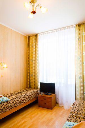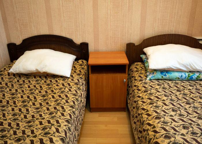 Двухместный номер стандарт, включает: санузел, холодильник, телевизор, две односпальные кровати. Кулер с горячей водой находится на этаже.